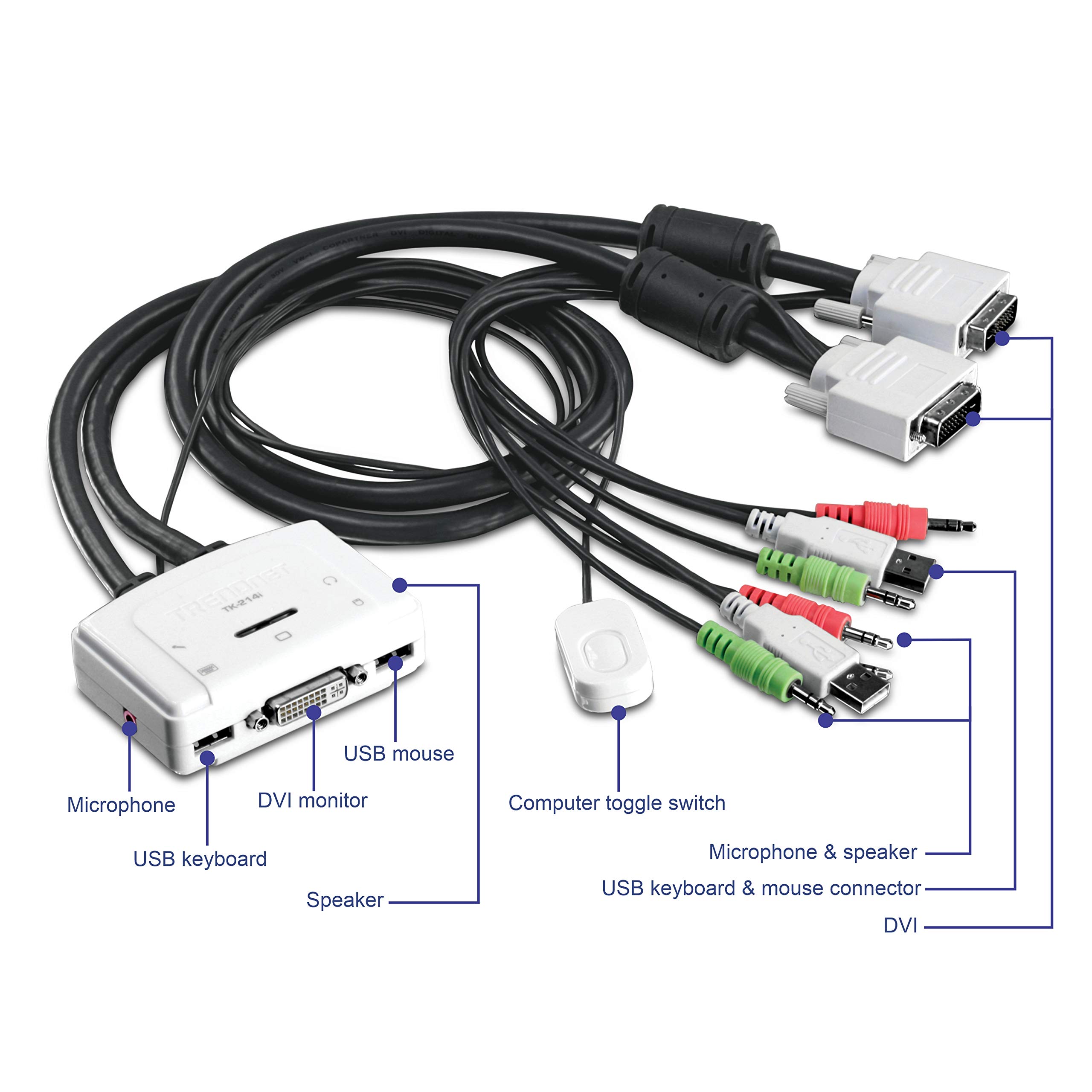 TRENDnet 2-Port DVI USB KVM Switch and Cable Kit with Audio, Manage Two PC's, USB 2.0, Hot-Plug, Auto-Scan, Hot-Keys, Windows/Linux/Mac Compliant, TK-214i