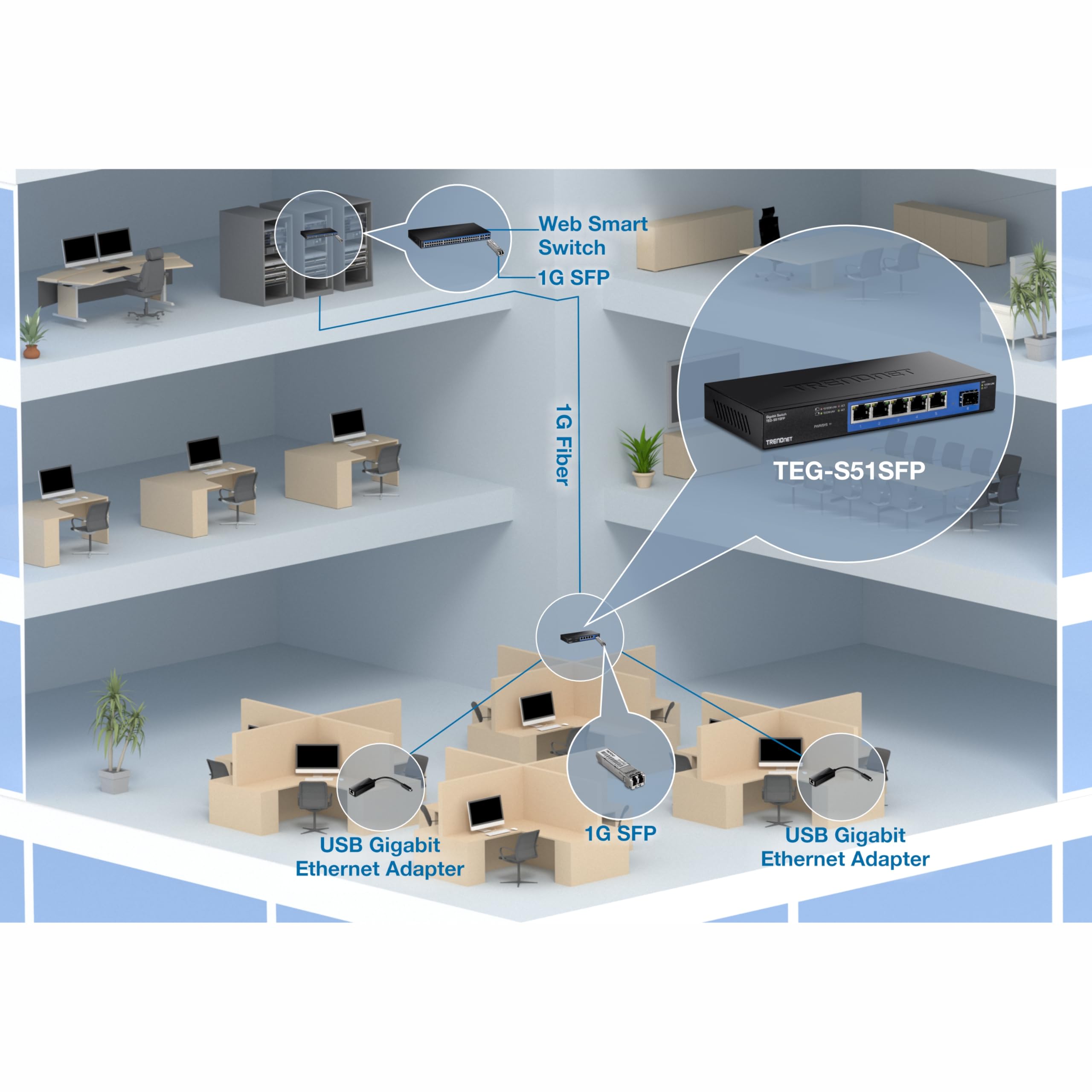 - LIFETIME PROTECTION -We stand by the quality of our products. The 5-Port Gigabit Switch with SFP Slot, TEG-S51SFP is secured with Lifetime Manufacturer Protection from TRENDnet. (U.S. and Canada Only)