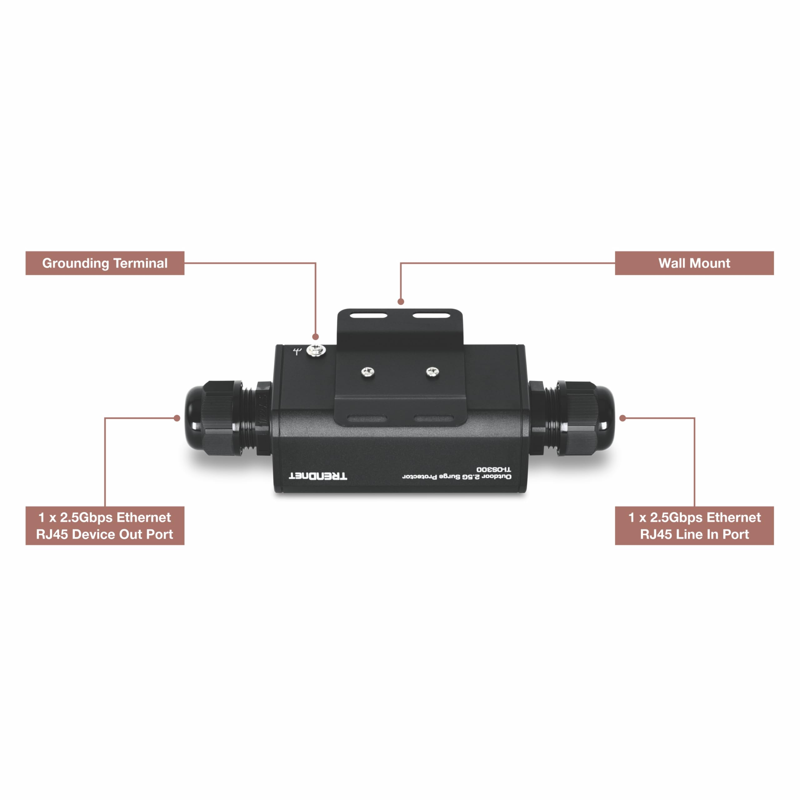 TRENDnet Outdoor 2.5G PoE++ Ethernet Surge Protector, TI-OS300, 2 x 2.5Gbps RJ-45 Ethernet Ports, IP67 Rated, NDAA & TAA Compliant