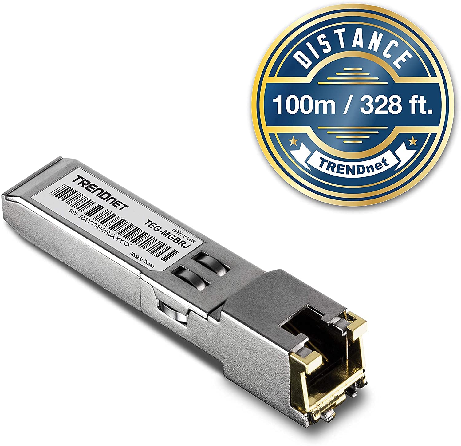 TRENDnet SFP to RJ45 1000BASE-T Copper SFP Module, TEG-MGBRJ, 100m (328 Ft.), RJ45 Connector, Hot Pluggable, Supports Data Rates Up to 1.25Gbps, IEEE 802.3ab Gigabit Ethernet, Lifetime Protection