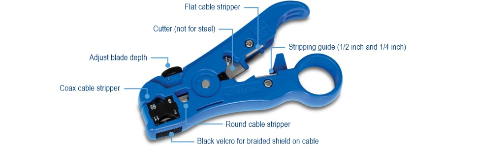 - WIRE STRIPPING: Designed for stripping RG59/6/11/7 coaxial cables and UTP, STP, CAT5 ethernet cables